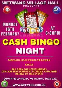 Cash Bingo Night – Monday 16th February